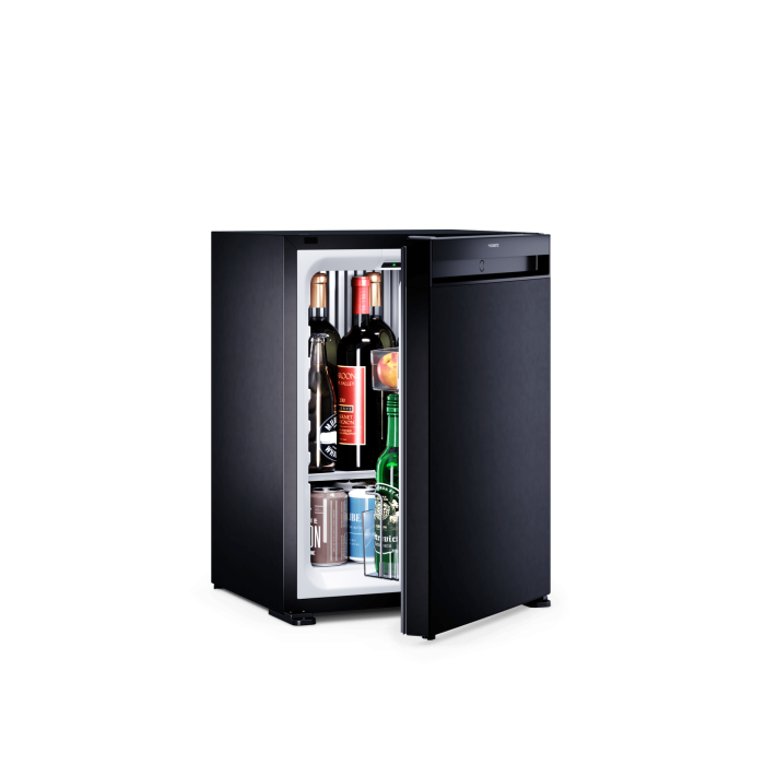 Dometic HiPro Alpha A40S - This stylish 40-l-class absorption minibar combines silent cooling comfort with the best energy efficiency in its class. It satisfies the needs of discerning guests and reduces operating costs for hotels. Suitable for free-standing use or for integration into a piece of furniture with the quick-fix sliding hinge supplied as standard.